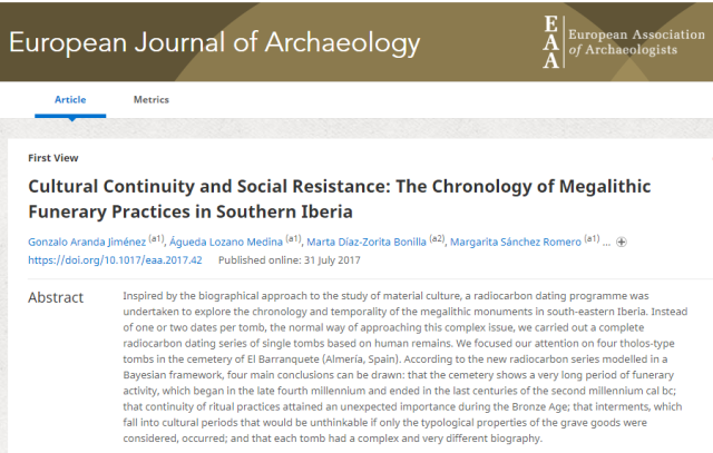 The UISPP awards it Medal for Best Neolithic Book to our monograph “Montelirio. A Great Megalithic Monument of the Copper Age”