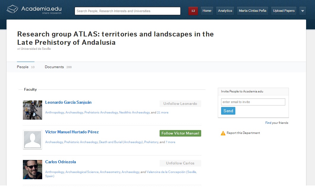 Creamos un perfil para el Grupo Atlas en Academia.edu, el popular sitio de difusión e intercambio de trabajos científicos que está experimentando un notable crecimiento. En este perfil, que esperamos ir completando y ampliando en los próximos meses, es ya posible encontrar y descargar una gran cantidad de separatas electrónicas de publicaciones de nuestro grupo de investigación.