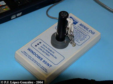 En la foto de la izquierda, Marino se encuentra descargando los datos obtenidos durante el tiempo que ha estado trabajando el arte. En la foto de la derecha veis el minilog conectado a una interface especial y ésta al ordenador. |