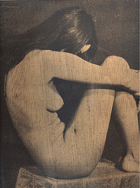 Emulsión fotográfica sobre tabla desnuda. Los accidentes anatómicos se superponen a los de la madera.