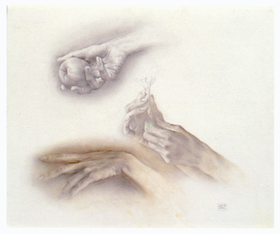 "Las manos de Marina". Lápiz de grafito y acuarela.