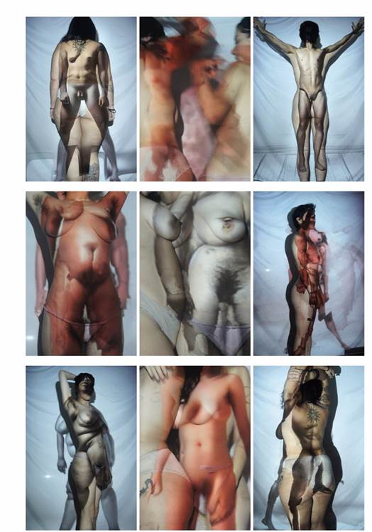 Figura 6. Haciendo un cuerpo Queer. Registro de la performance en diálogo con el video prototipado generado titulado Multitudes Queer (2024).