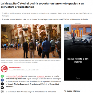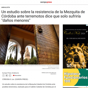 2023 – Europapress – A study on the earthquake resistance of the Mosque of Córdoba says it would only suffer “minor damage”