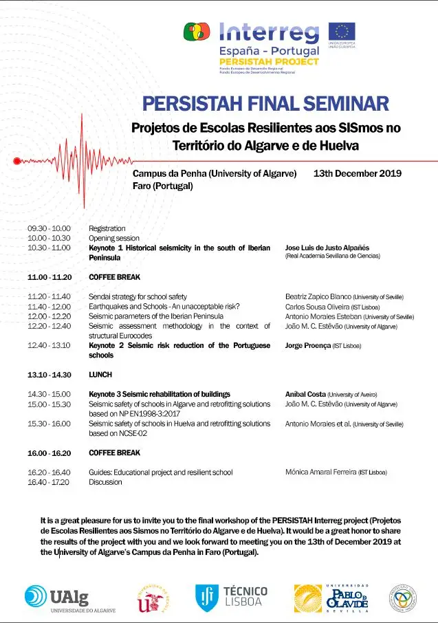 On July 5th, 2019, the Final Seminar of the PERSISTAH Project (Seismic Performance of Schools in Cross-Border Territories: Assessment and Retrofitting) was held at the School of Architecture, University of