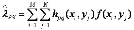 Entonces, como f(x,y) es continua sobre la imagen plana, se puede escribir la función de imagen f(x,y) como una expansión de series infinitas truncada al momento de orden máximo que consideremos, y usando la versión aproximada de los momentos de Legendre: