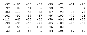 Si calculamos la inversa de la transformada del coseno a la matriz anterior, obtenemos la misma matriz que la original: