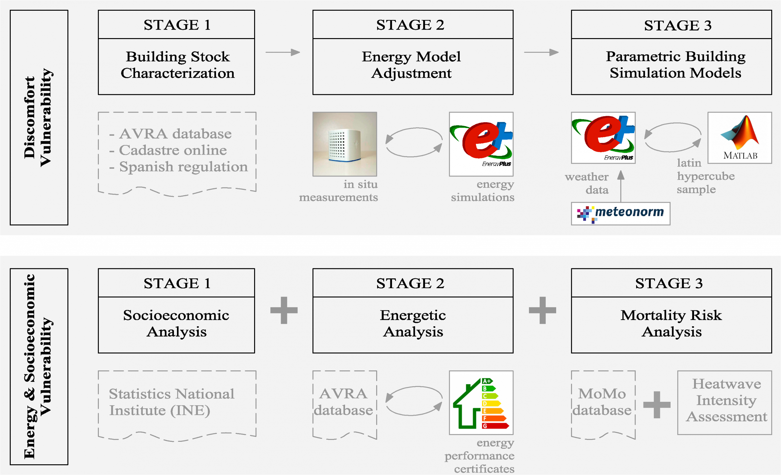 Para ello, se plantea una metodología que combina diferentes técnicas: las estadísticas, para el análisis de bases de datos y resultados; las experimentales, basadas en mediciones in situ; y las numéricas, para la simulación energética paramétrica y el desarrollo de Redes Neuronales Artificiales. Para ello se ha configurado un equipo multidisciplinar formado por arquitectos, con una amplia experiencia en análisis ambiental y energético de edificios, y matemáticos expertos en programación de modelos de simulación energética, estadística y optimización numérica.