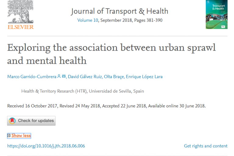 Health & Territory Research (HTR) de la Universidad de Sevilla es un grupo de investigación innovador, internacional e interdisciplinar formado por geógrafos, urbanistas, ambientólogos, psicólogos y estadísticos, que investigan sobre la salud urbana y sus condicionantes socioeconómicos, ambientales y territoriales.