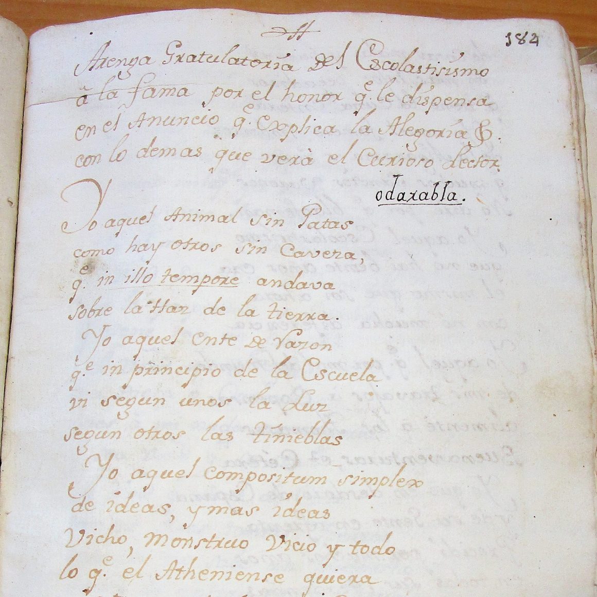 Los títulos rescatados por la profesora Montoya se inscriben en la polémica que los universitarios sevillanos mantuvieron con Alvarado a propósito de las celebraciones festivas que tuvieron lugar en la ciudad a propósito de la proclamación de Carlos IV. Con su característico tono humorístico y festivo, Alvarado se muestra aquí ante sus enemigos como un cruzado contra la modernidad, defensor a ultranza de la escolástica y contrario a la reforma de la educación superior.