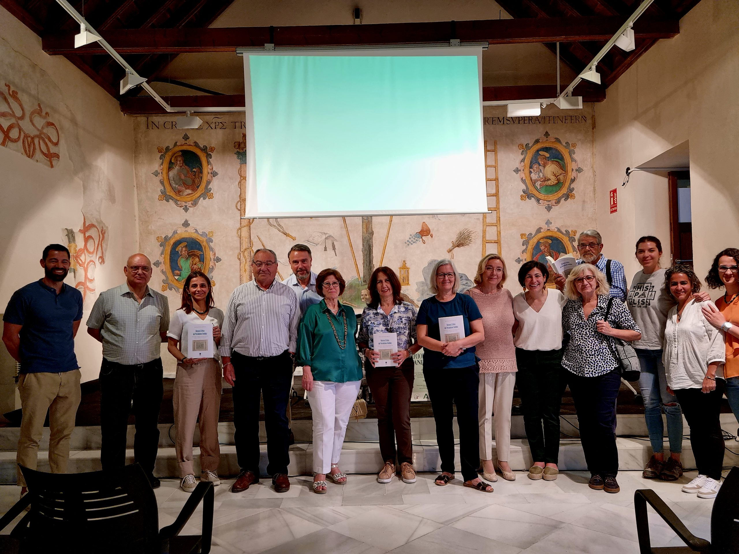 © Fotografía grupal de los ponentes y el público asistente en el acto de presentación del libro en la Sala de pinturas del Espacio Santa Clara.