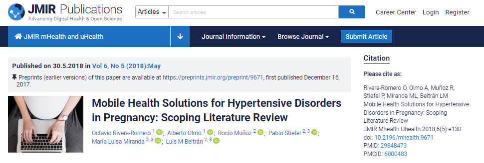 JMIR mHealth and uHealth | Mobile Health Solutions for Hypertensive Disorders in Pregnancy: A Scoping Literature Review https://mhealth.jmir.org/2018/5/e130/PDF