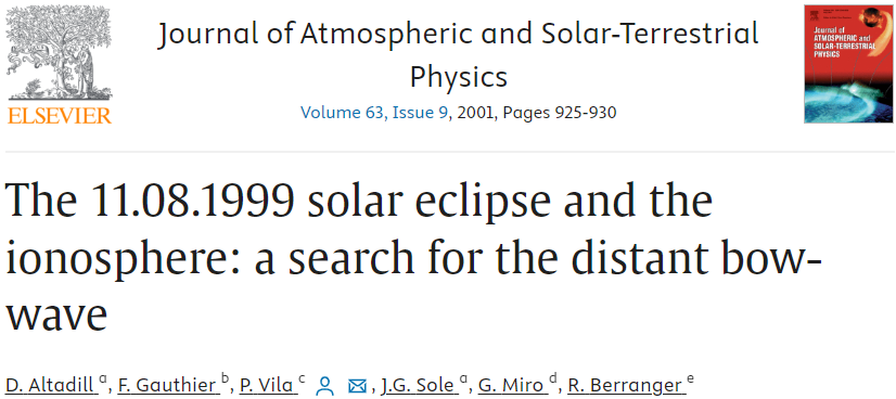 May 23, 2001 N/A THE 11.08.1999 SOLAR ECLIPSE AND THE IONOSPHERE: A SEARCH FOR THE DISTANT BOW-WAVE [cft format=0] [cft format=1] Journal of Atmospheric and Solar – Terrestrial Physics | THE 11.08.1999 SOLAR ECLIPSE AND THE IONOSPHERE: A SEARCH FOR THE DISTANT BOW-WAVE https://www.sciencedirect.com/science/article/pii/S1364682600002042/pdfft?md5=85f90d7444716c697a4fa99d503bb47c&pid=1-s2.0-S1364682600002042-main.pdf Categories: Bulletin board María Gloria Miró Amarante Press Publications in journals Scientific Production Team Members